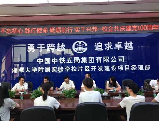 5月14日,湘潭大学土木工程与力学学院本科生党支部与中铁五局建筑公司装饰安装分公司党支部联合开展“不忘初心践行使命,砥砺前行实干兴邦——校企共庆建党100周年”主题活动。土木工程与力学学院党委副书记欧阳巍、中铁五局建筑公司湘潭片区项目书记王斌、湘潭大学附属实验学校项目副经理杨英青等共计100余人参加活动。