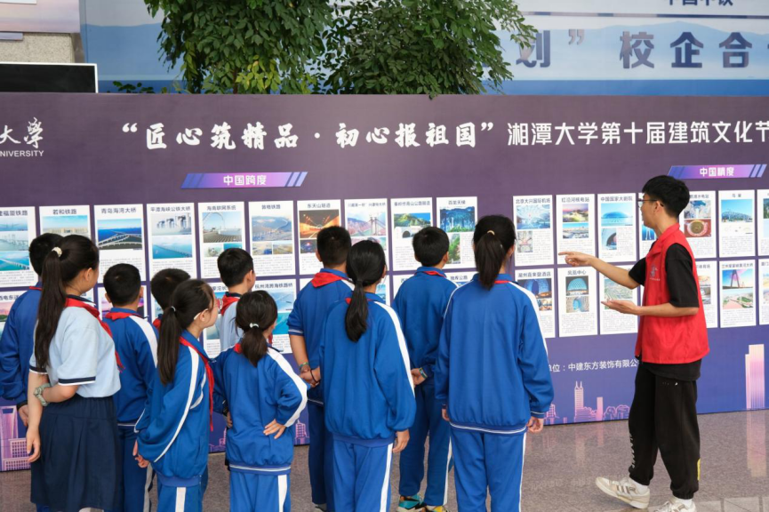 参加本次体验日的是来自先锋学校的各年级学生代表,院团委书记金凤和志愿者带领小朋友们参观并为他们讲解建筑图片展板内容,一起领略建筑中蕴含的奥秘,通过建筑深刻感受改革开放以来我国综合国力和科技水平的澎拜发展。