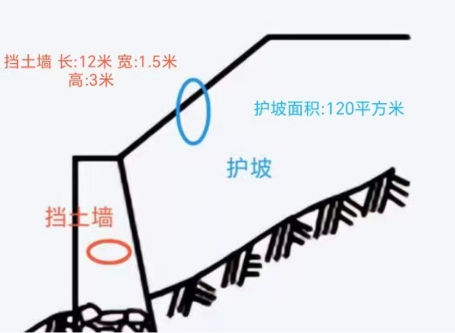 实践团兵分两路开展数据和信息收集工作。一组对山体滑坡点进行空地一体化勘查:无人机执行高分辨率航拍与三维数据采集,结合地面踏勘,获取地貌特征、裂缝形态及位移迹象等数据,并完成滑坡体三维坐标建模。另一组深入山体滑坡点周边农户进行调研,详细了解造成山体滑坡的原因、带来的影响、前后的变化及村民的担忧等,走访5户村民,交流10多人。综合掌握的数据信息,参照农村滑坡点治理的常用举措,团队建议采取底部修筑挡土墙,表面加固边坡的对策,并初步设计了土坡挡土墙,计算了大概造价。