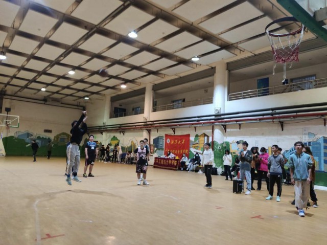 为缓解比赛的紧张气氛,中场休息时,举行了三分投篮比赛,命中多的参与者可获得精美小礼品一份。到场的同学们热情高涨、跃跃欲试,增加了比赛的趣味性和看点。