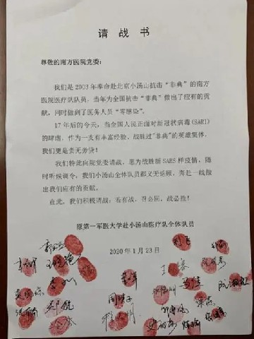 2003年,南方医疗队,奉命赴小汤山抗击“非典”;2020年,面对“新冠”,他们再一次积极请战,多名武汉医生,在请战书上按下手印,申请到疫情最凶险的呼吸科去。他们心中有同一句口号:“若有战,召必回,战必胜。”