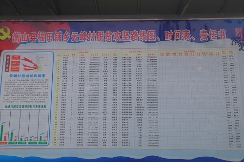 图为云峰村脱贫攻坚路线图、时间表、责任书