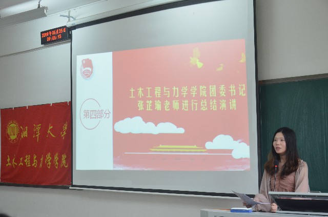 院团委书记张芷瑜老师对学院2018-2019年度团学工作的开展情况给予肯定,并号召同学们共同努力,团结一致发扬“土力”精神,营造土力学子锐意进取、共同进步的良好风貌。
