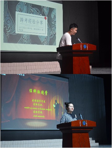 被美国clark university录取的出国留学代表任科泳介绍了她备战托福和GRE的经历,以亲身经历告诉想要出国的同学学习英语的艰辛和重要性。她告诉同学们,想考研,就一定要给自己一个充分的理由,并且要明确自己的专业方向和心仪的学校。