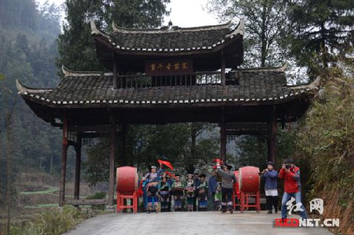 中黄村重午古苗寨在吉首市内是有名的文化艺术之村。村内除了生态环境优美,建筑群独特外,90%的村民都喜爱从艺,他们自编自演的节目《打戽桶》、《法术》等节目,曾多次参加州市举行传统文艺节目汇演,获优秀创作奖、金奖和铜奖;2009年湘鄂黔渝四省边区民族民间艺术大赛获总分第一,深受到观众的好评和市、州级主管部门的高度评价。几年来,他们的文艺节目与传统的工艺品加工,特别是银饰、打花带、织布等,得到了省电视台、湖南卫视 “晚问新闻”栏目、“乡村发现”栏目、湖南经视、团结报, 州电视台,湘西电视报等相关新闻媒体前后多次报道,被吉首大学民族学专家确定为民族文化研究基地。据统计,该村从事文化艺术人员有500余人,占全村总人口的50%以上,演出人员宗教祭祀的法司、道士、天文历法,民间医药、民间文学、音乐,舞蹈、戏曲、曲艺、雕塑绘画,传统工艺品加工、民族民间体育如武术、舞狮等应有尽有。