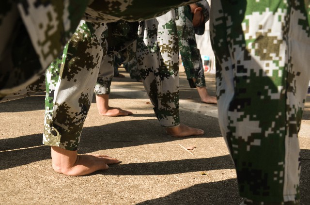军姿之余加以俯卧撑辅佐,军训的乐趣并不只有军姿这么简单。