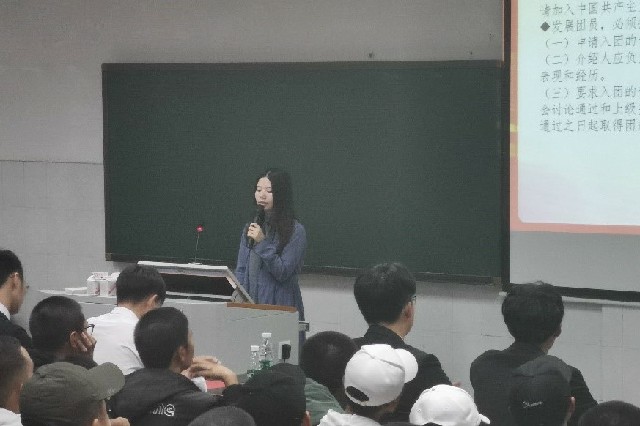 接着,团委第一副书记任亮就共青团的基本知识进行了讲解,关于共青团的基本介绍,团旗团歌和团员证的基本知识,共青团的基本性质及奋斗目标,团员应履行的义务及享有的权利等内容,让同学们进一步加深了对共青团的了解。