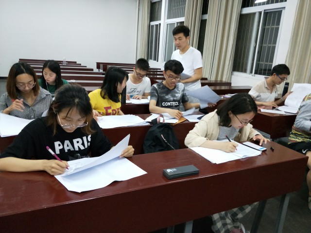(图为17级辅导员批阅试卷)