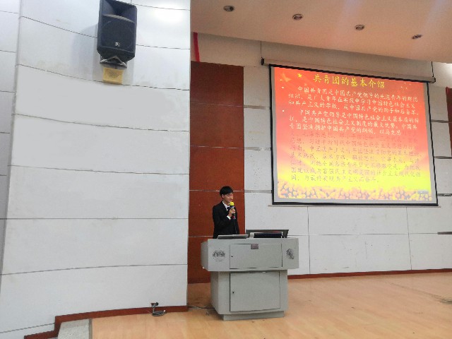 团委第一副书记黄伟强对团徽团旗、团歌及团员证、共青团员应该履行的义务和享有的权利等基本知识做了介绍,希望学员能够在生活中时刻以团员的身份来要求自己,起到先锋模范作用。