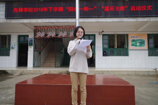 我院第十五届团委学生会团委第二副书记吴家豪向大家介绍了星辰支教的目的和意义在于帮助先锋小学的小朋友们提高学习成绩,养成良好的学习习惯,提高综合素质。他希望志愿者们能够保持耐心,树立信心,不断启发和鼓励小朋友们争做时代好少年。