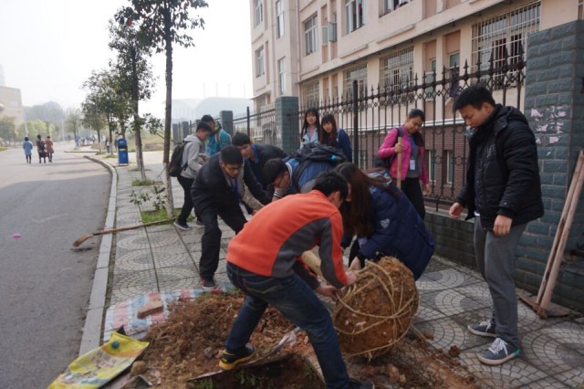 活动开始前,同学们个个精神饱满,干劲十足。在到达活动地点后,志愿者开始栽种事先准备好的树,全身心的投入到活动中。他们分工明确:松土、施肥、栽树、填树坑、浇水,在经过三个小时的辛苦劳动之后,虽然大家都汗流浃背,但是很圆满的完成了这次活动。志愿者们还在每棵树上贴上了自己写的标语,为自己种的树赋予更多的意义。栽树是个体力活,同学们都很累,但没有一个人抱怨,他们知道自己是在为社会做贡献,同时也是在美化社会生活环境。同学们不仅植下了属于自己的树苗,更是属于地球的树苗,为地球增色添彩尽了自己的一份力。希望树苗成长的同时,同学们也可以健康茁壮的成长。