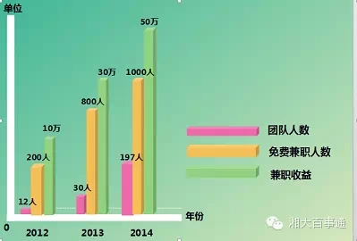 如上图所示:团队累计为我校学子提供免费兼职近2000人次,直接创收90余万元,间接收益达100余万元。