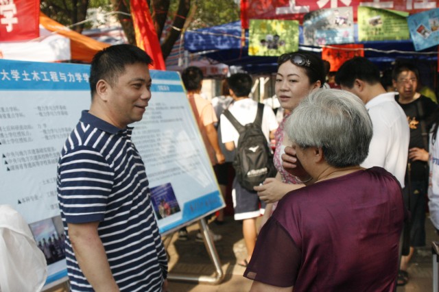 就在大家都各司其职的时候,院党委谢胜文书记、院党委陈幸华副书记一起来到迎新点探望迎新工作者们。天气虽然炎热,但老师们一直在迎新点陪着迎新工作者,这让大家的干劲更足了。在上午的迎新工作中,周益春副校长、刘建平副校长、学工处谢罗奇处长、校团委齐绍平书记、招生就业处宁国良处长、学工处王建平副处长、校团委马卿副书记等校领导来到迎新点视察,大家不禁士气高涨,也愈加热情。