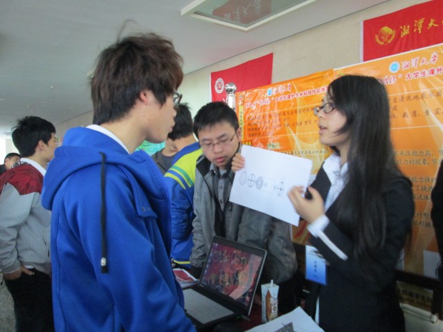 土木工程与力学学院宣传部(记者 张亚荣)3月10日上午8:30,湘潭大学第九届“挑战杯”大学生课外学术科技作品竞赛及展示活动第二日在学生活动中心一楼大厅继续举行。本次活动以“ 崇尚科学、追求真知、勤奋学习、锐意创新、迎接挑战”为宗旨,努力培养广大青年的创新、创业意识,造就一代符合未来挑战要求的高素质人才。