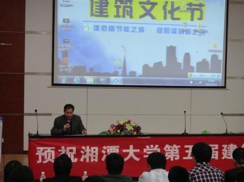 土木工程与力学学院宣传部记者 单桥平)湘潭大学第五届建筑文化节开幕式于2012年4月10号下午在逸夫楼第二报告厅隆重开幕。此次开幕式主要分为:往届建筑文化节回顾、本次建筑文化节预告、本届文化节活动结合送啊,学生代表发言,节能环保宣传以及宣誓,领导致辞并宣布开幕六个流程。