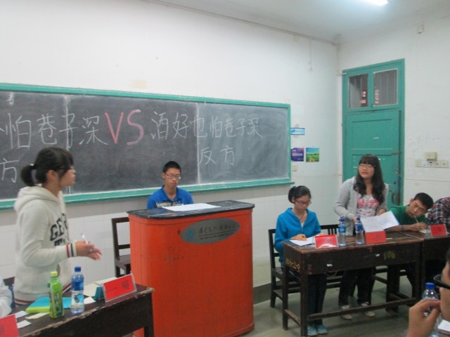 本场辩论赛评委有文与新闻郭睿昊长,信息工程沈航长,兴湘钟佳材长。本场辩论赛双方是正方12级土木工程一班和反方12级建筑环境与设备工程一班。此次辩论赛辩题是“酒好怕不怕巷子深”。