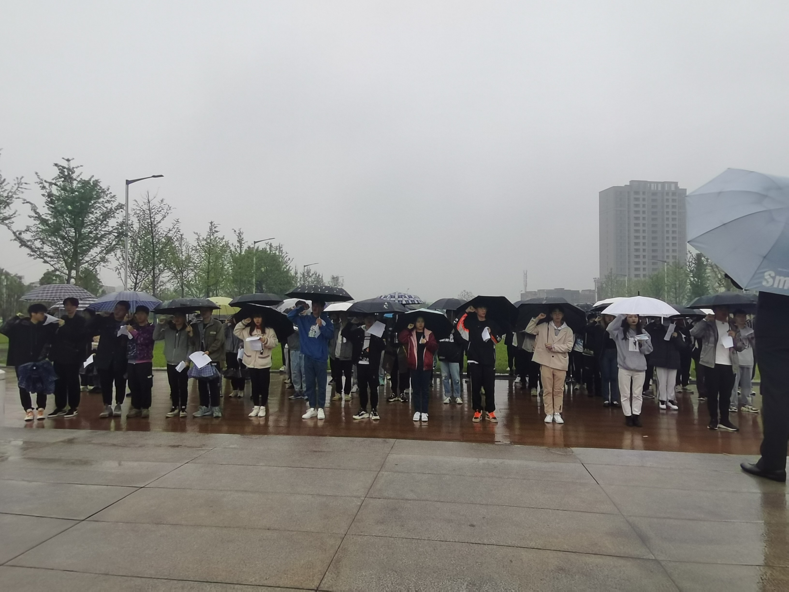 尽管当天天上遍布乌云,伴随着蒙蒙细雨,但现场参与宣誓仪式的共青团员们却个个热情十足。在主持人的带领下,同学们庄严肃立在铜像广场前,饱含对祖国及团组织的热爱进行了庄严的宣誓并齐声合唱中国共青团团歌,声音传遍了整个广场,在庄严的歌声中本次活动也圆满落幕。