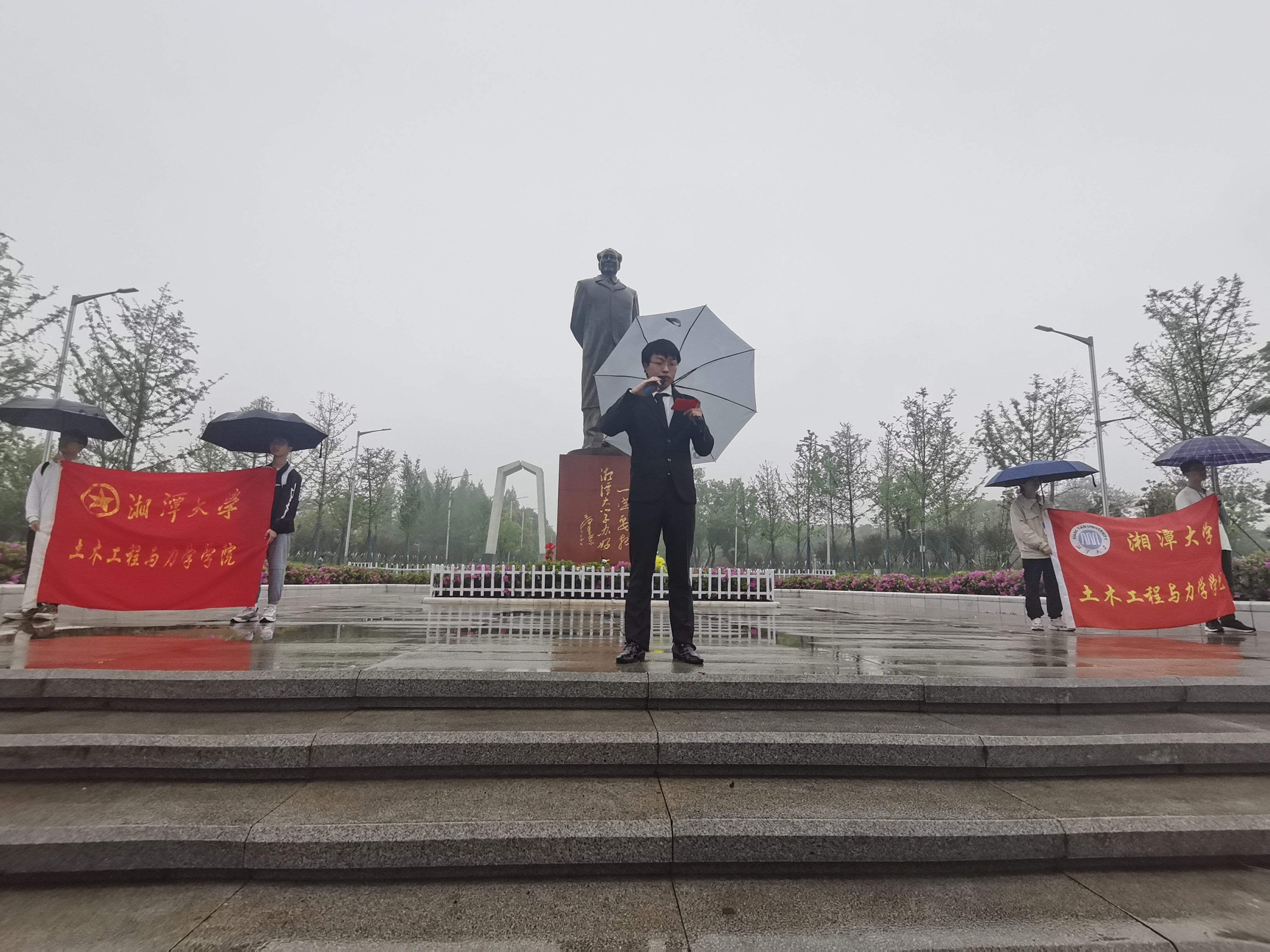 4月11日,土木工程与力学学院第二十一期团校学习重温入团誓词仪式在湘潭大学毛泽东铜像广场前举行。团委第一副书记胡立周、团委第二副书记杨卓林带领本次团校学习学员,各班团支书,团委、学生会学生干部一同参加了此次仪式。