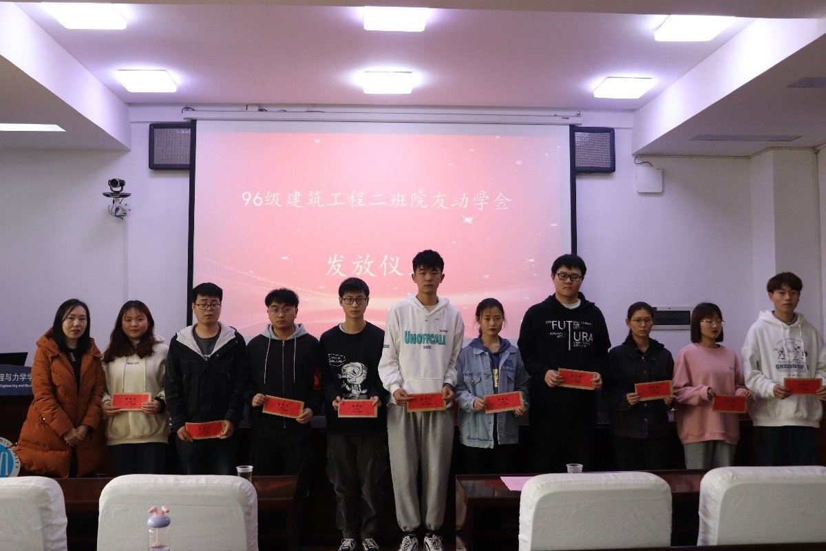 根据96级建筑工程二班校友资助委员会的要求,本着公开、公平、公正、择优的原则,经学院综合评议,由96级建筑工程二班校友资助委员会审定,评选张明辉、罗泽江、杨霞、杨静、曾浩哲、邵浩男、黄立月、任亮、吴彪、江瑛10名同学为院友助学金获得者。