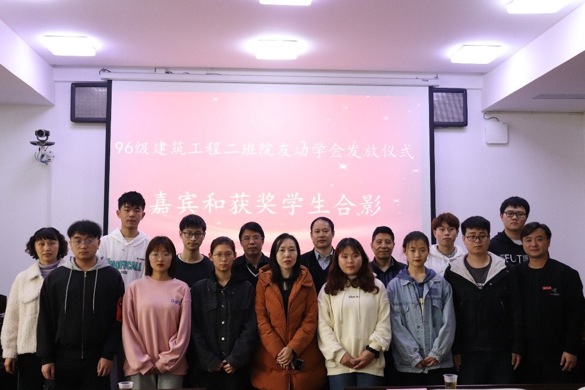 最后,院长龙志林表达了对96级建筑工程二班院友们的感谢和对他们无私奉献精神的崇敬,并从奋发图强、励志成才、严于律己三个方面对获得资助的同学们提出了新期望,希望受到表彰的同学珍惜荣誉,再接再厉,全院学生能够以受到表彰的同学为榜样,坚定理想信念,不断追求卓越,努力成为德智体美劳全面发展的社会主义建设者和接班人。