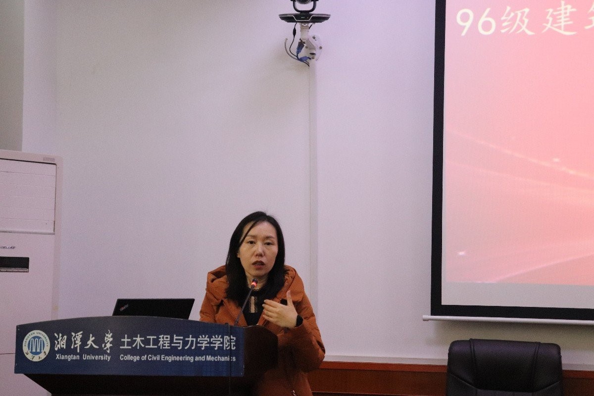 96级建筑工程二班院友代表蔡晓望女士发言,她结合自己的亲身经历讲述了,原生家庭对个人的影响、如何从迷茫中找到自己的方向、以及大学时光应该如何度过。激励同学们继续努力,回报社会,并将爱心继续传递下去。