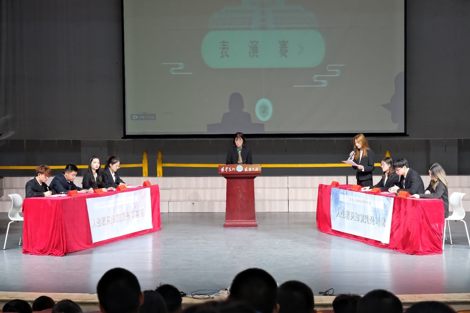 本次“明德杯”开幕式表演赛由土木工程与力学学院辩论队呈现,进行过程中八位辩手旁征博引妙语连珠,结合理论与现实充分向大家论证人生若只如初见是可悲的还是可喜的观点,双方辩手争锋相对互不相让,为大家带来了一场有理有据的精彩辩论表演。