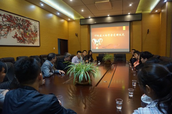 2017年4月9日晚19:00,97建工助学金第二期发放仪式在A433会议室举行。97级建工系校友代表梁俊、院长罗文波、副院长许福、党委副书记陈宾、办公室主任易晓、院学工办老师张芷瑜以及全体受赠学生、学生代表出席仪式。
