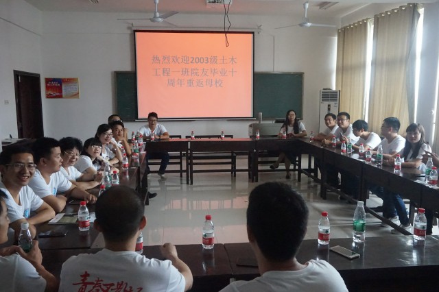 10月7日,我院2003级土木工程1班同学毕业十周年回母校相聚,在院楼教室重温属于他们的青春。
