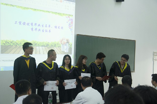 陈宾副教授宣读了湘潭大学土木工程与力学学院2019届优秀毕业生名单,李小敏等18名同学获得“湖南省2019届优秀毕业生”荣誉称号,刘亦琳等23名同学获得“湘潭市2019届优秀毕业生”荣誉称号,柴维等78名同学获得“湘潭大学2019届优秀毕业生”荣誉称号,卓昭君等3名同学获得“湘潭大学2019届创新创业优秀毕业生”荣誉称号,院领导、老师为优秀毕业生代表颁发荣誉证书。