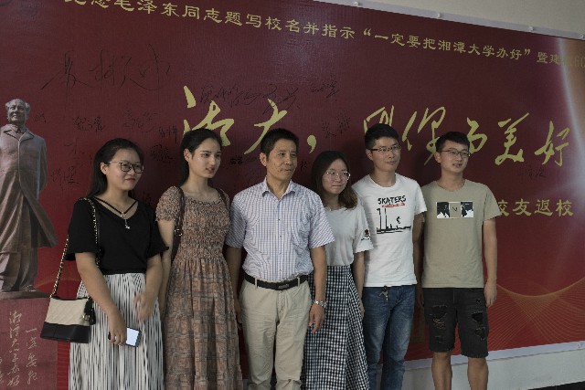 上午8时30分开始,校友们便来到土力院楼,在这里与同学老师一起追忆在湘大的年少时光,感慨和惊叹母校的变化。在土力院团委学生会干事的引领下,校友们纷纷在签名墙上签下自己的名字,三两老友在签名墙前亲切合影,和自己的班主任聊聊年轻往事,感叹这来之不易的相聚,诚挚为母校60华诞送上祝福。