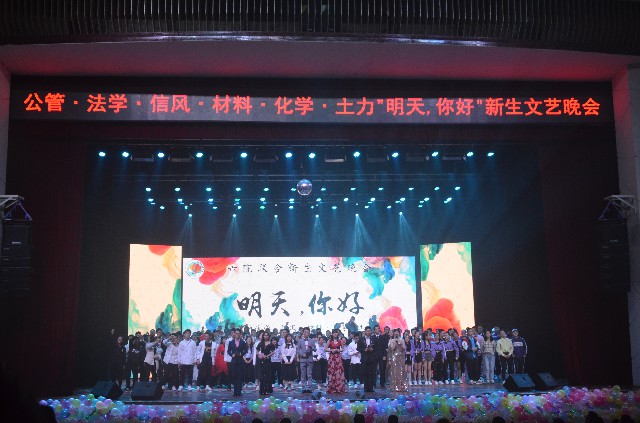 12月2日晚七点,由公共管理学院、法学院·知识产权学院、信用风险管理学院、材料科学与工程学院、化学学院和土木工程与力学学院六院联合举办的新生文艺晚会在湘潭大学俱乐部举行。副校长刘建平教授、各学院领导老师、2018级新生共同观看了本次晚会。