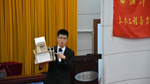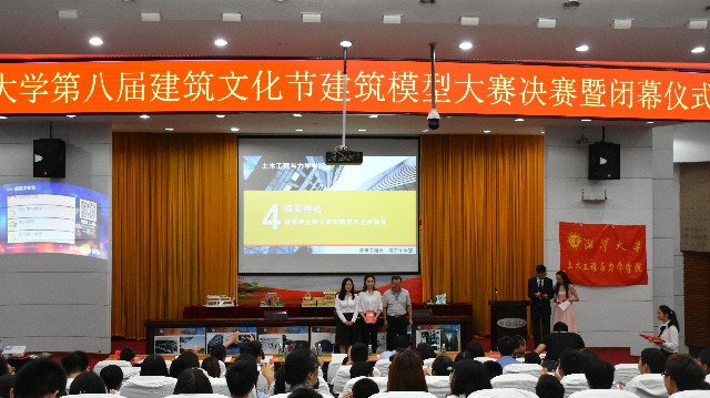 “承甲子湘大,筑千年华夏”。6月3日下午,第八届建筑模型大赛决赛暨闭幕仪式在逸夫楼一报举办。副校长刘建平、土木工程与力学学院院长龙志林、党委书记陈幸华、副院长陈宾、外国语学院党委副书记陈娟、数学与计算学院党委副书记易山峰、物理与光电学院党委副书记杨澜、兴湘学院党委副书记樊军、木工程与力学学院党委副书记欧阳巍和历史系、法学院等多个院系的团委、学工办老师出席活动。