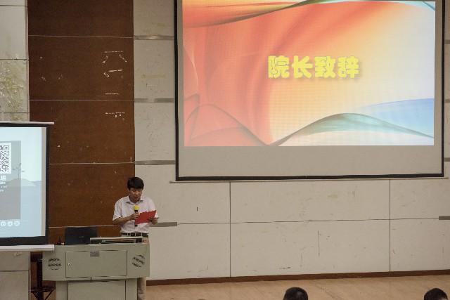 开学典礼在庄严的国歌中拉开帷幕。院长龙志林对新同学的到来表示热烈的欢迎,向新生们介绍了我院的办学师资、教学设施及专业特色,并向同学们提出了三点建议:沉静内心,确立新的人生目标并为之奋斗;做好时间规划与自我管理,实现主动学习;一日三省,认清自我并掌握为人处世之道,担当时代大任。