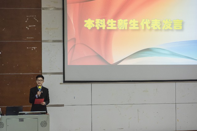 学院优秀在校学生代表,16级土木工程五班黄伟强同学鼓励新生将大学作为梦开始的地方,培养底蕴,经营人生。他特别强调学习与规划未来、参加组织丰富文化生活的重要性,希望新生们能够传承校训精神。18级土木工程三班新生李承丞同学代表18级本科新生表达了对大学生活的憧憬及努力明志,挥斥方遒的决心。18级结构工程专业李帅作为研究生新生代表发言,他认为接下来的研究生生活将充满探索,希望新生们寻求思维突破,以先博后约的方式完成学业。