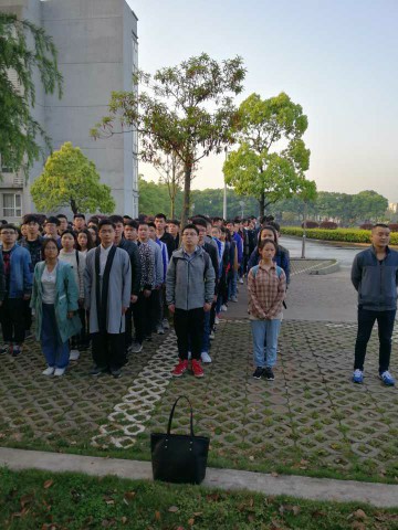 为坚定理想信念,紧扣时代脉搏,坚定爱党爱国思想,2017年4月9日清晨,湘潭大学土木工程与力学学院师生在一教国旗台观礼国旗护卫队升旗仪式,见证国旗扬起的庄严时刻。参加此次仪式的有土木工程与力学学院党委副书记欧阳巍、院团委书记张芷瑜、团委学生会副部级以上成员、学生党员、养成辅导员及英语辅导员一百五十余人。