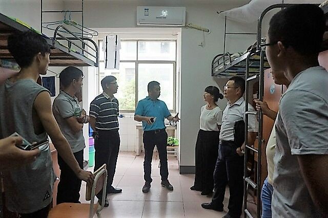 8月31日下午,我院院长罗文波、党委书记谢胜文、副院长龙志林、党委副书记陈宾、院团委书记、学工办老师走访了我院新生寝室,为大一新生送去了问侯与关怀。