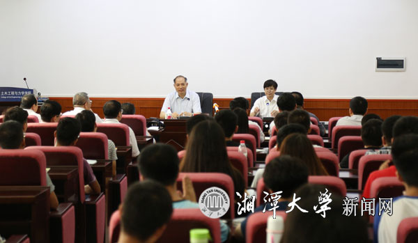 7月1日,是中国共产党成立95周年纪念日。在这个具有特殊意义的日子里,省委常委、省委组织部部长郭开朗专程来到我校,为土木工程与力学学院研究生、本科生党支部100余名学生党员上党课。省委教育工委书记、省教育厅厅长肖国安,省委巡视第八组组长郭树人,湘潭市委书记曹炯芳,湘潭市委常委、市委秘书长陈忠红,市委常委、市委组织部部长廖桂生,校党委书记章兢、校长黄云清、中科院院士欧阳晓平、校党委副书记周益春、副校长郑赤建陪同考察,并与大学生党员一起听党课。党课由章兢主持。