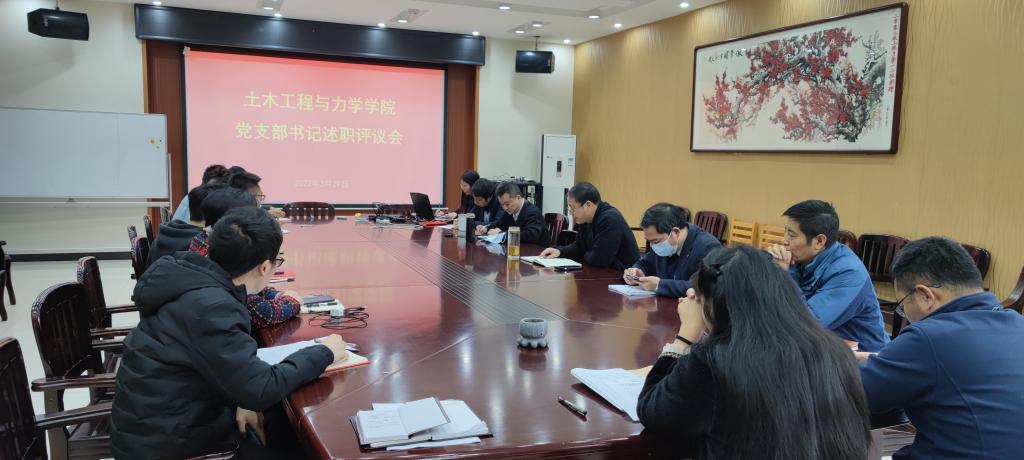 3月29日下午,土木工程与力学学院2021年度党支部书记述职评议会在院楼332会议室举行。学院全体党委委员、专职组织员及各支部书记出席会议。