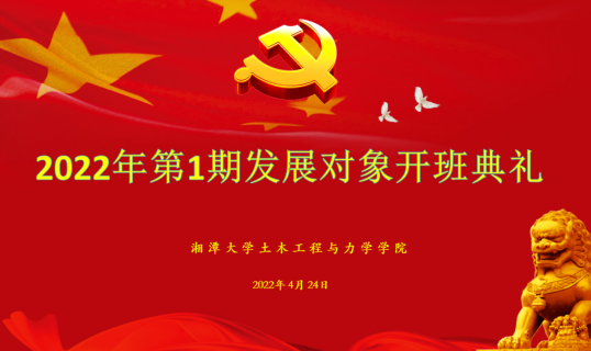 为贯彻落实新时代党的建设总要求和新时代党的组织路线,保证新发展党员质量,湘潭大学土木工程与力学学院开展2022年第1期发展对象培训工作。4月24日上午,土木工程与力学学院发展对象培训班开班典礼暨专题讲座通过线上形式顺利举行。院党委书记、分党校校长陈幸华,专职组织员、培训班班主任张芷瑜及学院102名发展对象参加了此次开班典礼。开班典礼由培训班班长续晓健主持。