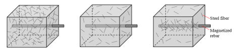 钢纤维增强混凝土结构中,一定量的钢纤维掺量可以改善钢筋与混凝土间的粘结性能,但钢纤维的掺入又会降低新拌混凝土的流动性,影响其在具有高流动性、高粘结性要求工程项目中的应用。为此,课题组提出了一种通过磁吸钢纤维增强钢筋与混凝土粘结性能的方法,研究证实了该方法可以实现在较少钢纤维掺量的情况下同时获得高粘结强度和高混凝土流动性的要求,揭示了磁吸钢纤维在钢筋周围的定向分布特征和钢纤维粘结增强机制,为钢纤维增强混凝土结构的应用提供了新的思路。
