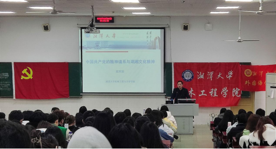 开班仪式后,机械工程与力学学院党委委员、副院长赵荣国做了题为“中国共产的精神谱系和湖湘文化精神的首场讲座。他详细讲述了革命战争时期形成的红色革命精神用生动的语言向学员们分享历史上革命家的故事指出湖湘文化精神湘潭大学艰苦创业守坚创新的精神是紧密联系在一起的学员们要继承先辈的革命精神,努力成为建设社会主义的优秀人才。他呼吁青年一代要提高思想觉悟,厚植爱国主义情怀,积极投入社会主义伟大实践,努力成为堪当民族复兴重任的时代新人