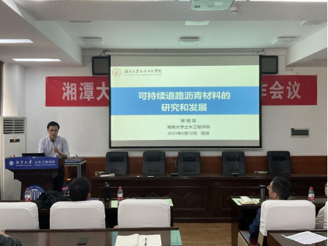 张恒龙教授首先介绍了湖南大学道路系的基本情况。然后,以绿色环保、可持续发展及交通强国发展战略为背景,围绕新型道路工程材料的理论研究与技术研发从改性沥青材料、沥青材料耐久性以及沥青材料再生利用三个方面进行了系统全面的介绍。同时基于课题组近年来的创新性研究成果,重点介绍了无机纳米材料延缓沥青老化、老化SBS改性沥青的结构修复及其再生性能两方面的研究内容并分析其发展趋势和面临的挑战。