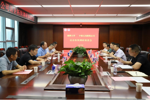 8月24日上午,湘潭大学土木工程学院党委书记陈幸华、副院长许福、陈宾、党委副书记欧阳巍、办公室主任易晓一行到中铁五局建筑公司开展访企拓岗调研,中铁五局建筑公司党委副书记、纪委书记付廷达、总工程师徐位东、人力资源部(党委干部部)、技术中心、办公室相关部门负责人及校友代表参加座谈。