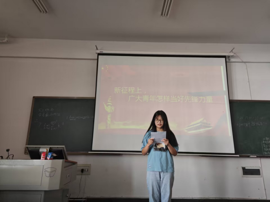 本次主题讨论会以“新征程上,广大青年怎样当好先锋力量”为主题进行讨论。各小组针对本次主题开展激烈讨论后由小组代表上台发言分享讨论结果。第一组小组代表表示,在新征程上,我们清年应该要有正确价值观,听党话,跟党走,要有更坚强的意志,不畏艰辛,保持为人民服务的初心。第三组小组代表表示,青年应该认清国情,立足实际。第六组小组代表表示,广大青年要练就过硬本领,树立梦想,从学习开始,事业靠本领成就的观念,要有真才实学服务人民,勇于创新创造,不断更新与时代发展和事业要求相适应的素质和能力。