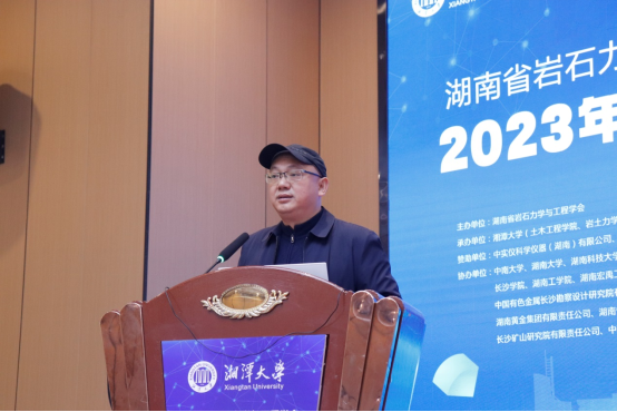湖南省岩石力学与工程学会理事长、湖南科技大学副校长王卫军致会议开幕辞。他表示,本次年会是为新时代的高层次人才提供学习与交流的良机,目标是促进学术思想的碰撞与融合,推动理论与实践的深入结合,鼓励与会者积极参与国际合作与交流,共同推动岩石力学与工程科技的发展。