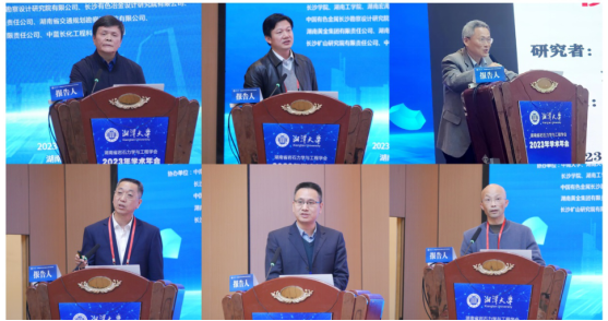 学术报告环节,南华大学丁德馨教授、中南大学周子龙教授、湖南大学苏永华教授、湖南省交通规划勘察设计院有限公司胡惠华研究员级高工、中南大学赵炼恒教授和我校董辉教授分别以“Sustainable Geotechnical Engineering”、“高海拔寒区金属矿开采与爆破技术”、“隧道建造数值计算模型边界位置推算探讨”、“桥隧搭接峡谷斜坡失稳源辨识与治理”、“基于非接触摄影的危岩体判识、稳定性分析与防护设计”和“坡积多孔介质结构特征-渗流特性的互馈作用研究”为题作了大会特邀报告。此外,年会还安排了19个邀请报告,来自高校、科研院所以及行业的专家学者齐聚一堂,交流了岩石力学与工程领域取得的最新科学研究和工程实践成果。与会者从多维度讨论岩石力学与工程的未来发展,探讨如何将前沿技术融入专业领域,实现数智赋能岩土力学科学研究与工程建设实践。