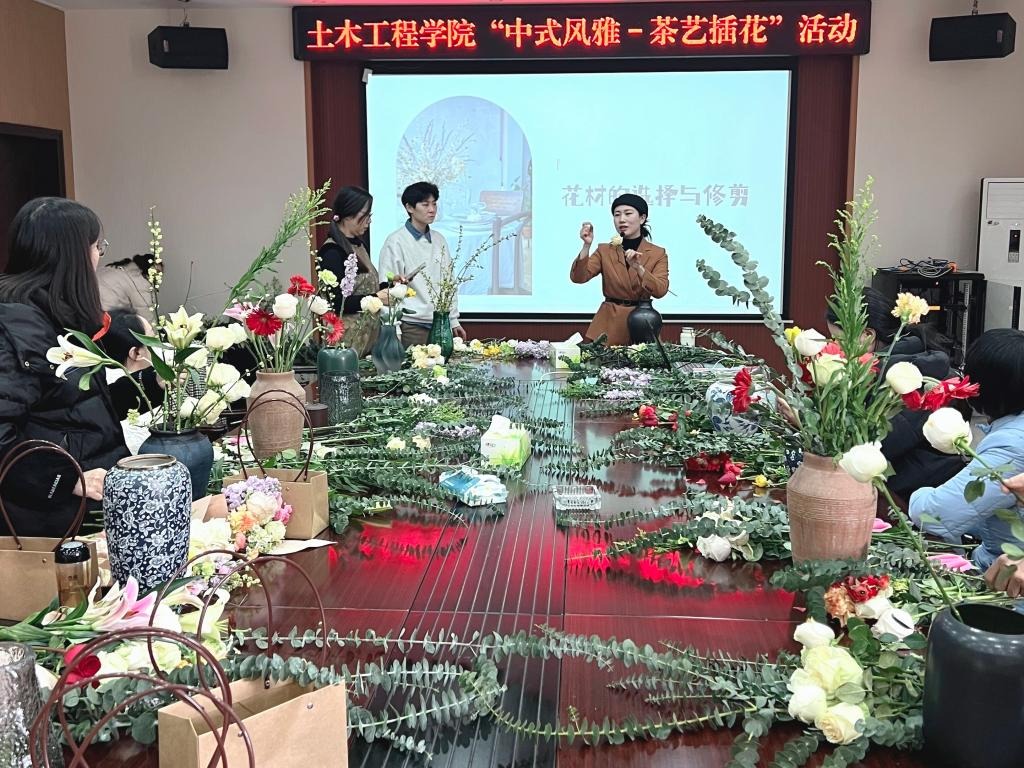 为庆祝第114个“三八”国际妇女节,激发全院女教职工工作热情,怡悦生活乐趣,加强情感链接,3月8日下午,湘潭大学欧美日逼视频分工会开展了以“中式风雅-茶艺插花”为主题的“三八”妇女节茶艺插花活动。