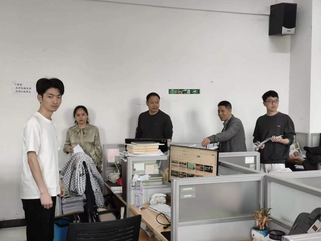 4月28日,由学院党委书记陈幸华、办公室主任易晓、院实验室主任刘湘晖和研工办龙凤文老师、邓彪老师以及研究生会成员组成评比小组,对研究生各工作室的卫生环境、安全状况、规范制度、文化建设等多方面进行了综合考察评价。
