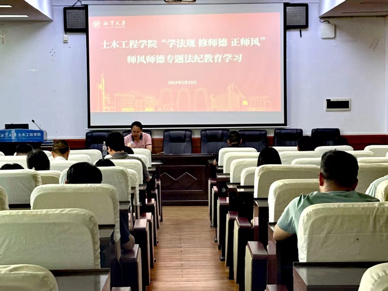 5月23日下午,欧美日逼视频“明道信道”专题讲座暨“学法规 修师德 正师风”专题法纪教育学习在土木楼A217召开。校纪委副书记、监察专员办公室主任蔡一文作专题讲座。欧美日逼视频全体教职工听取报告。