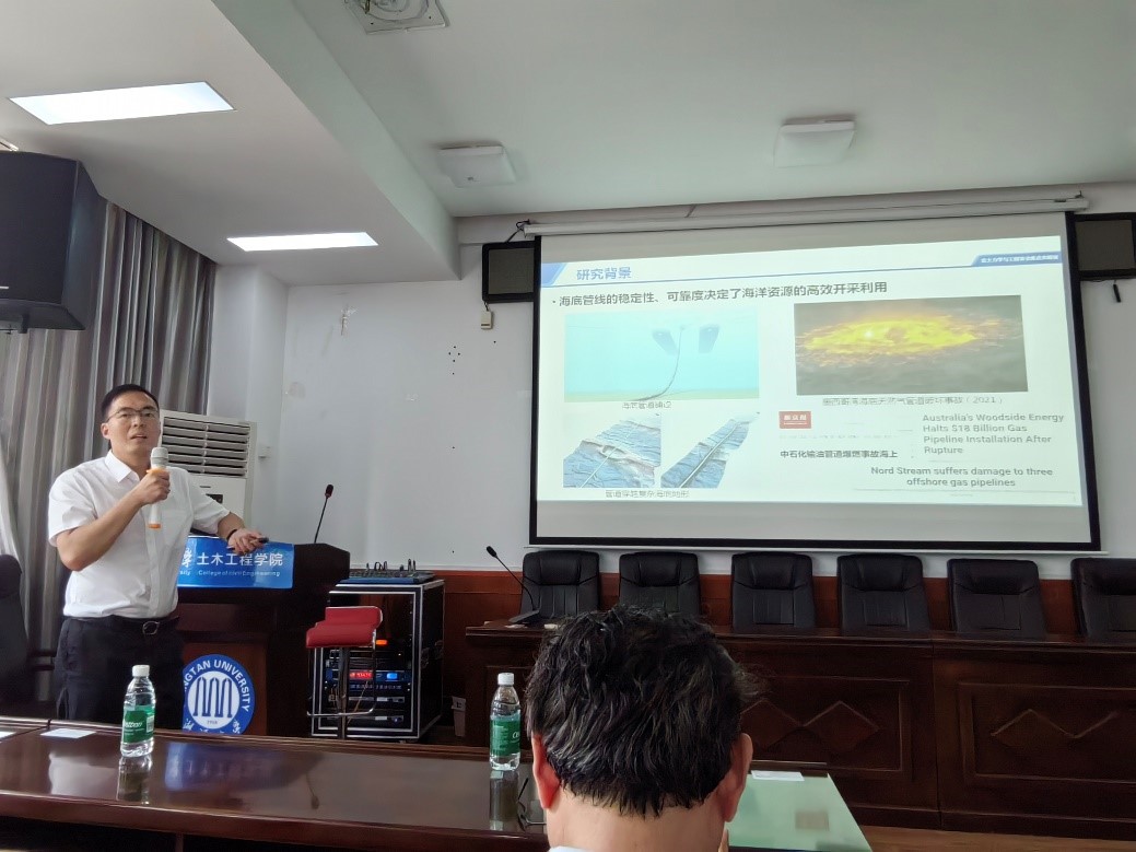 赵涛研究员介绍了海洋岩土工程中埋地海底油气管道的设计方法,针对现有规范、研究中存在的不足,提出了可以考虑覆盖土层破坏面形状的双变量屈曲阻力计算模型。该模型统一了局部、全局破坏模式的受力计算,从而简化了工程设计过程。